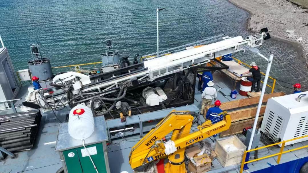 记者了解到,在本次科考中,地质队员们5月31日入住营地,6月6日钻取第一批湖泊岩芯样品,目前已完成了多个钻孔施工,成功采集了近千米岩芯,钻探进尺近1300米。队员们要在高海拔湖泊完成如此艰巨的任务,要克服连续钻探取芯、深水湖底钻孔护壁等诸多挑战。为此,地质团队进行多项技术创新。林俊宇告诉记者,比如通过绳索取芯工艺配合QD钻具的精准运用,提高取芯效率,保证岩芯质量;对钻机进行了精心改装,增加打杆器、自臂吊等,使得钻进效率和安全性大幅提升。