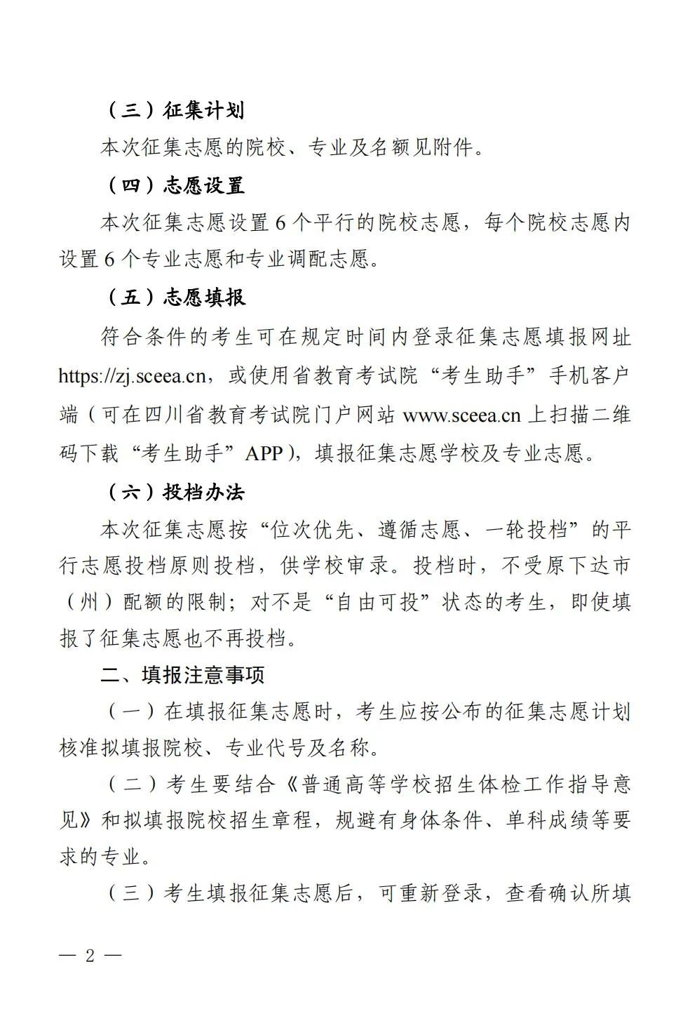 四川发布客户端消息 从四川省教育考试院获悉,我省今年普通高校招生国家专项计划(不含本科提前批国家专项)录取院校投档后,尚有部分院校招生计划未能完成。根据教育部和我省有关规定,按照招生“阳光工程”的要求,决定对未完成计划实行公开征集志愿。现将征集志愿的有关事项通知如下。本次征集志愿时间为7月15日16: 30-23:30。
