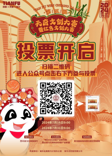 本次大赛的线上投票活动将于7月16日9:00正式开启至7月31日9:00截止,搜索关注“四川文化创意产业研究院”官方微信公众号或直接扫描下方投票二维码即可参与投票。