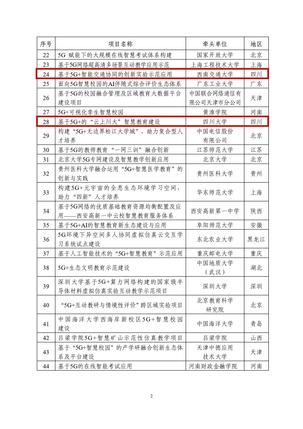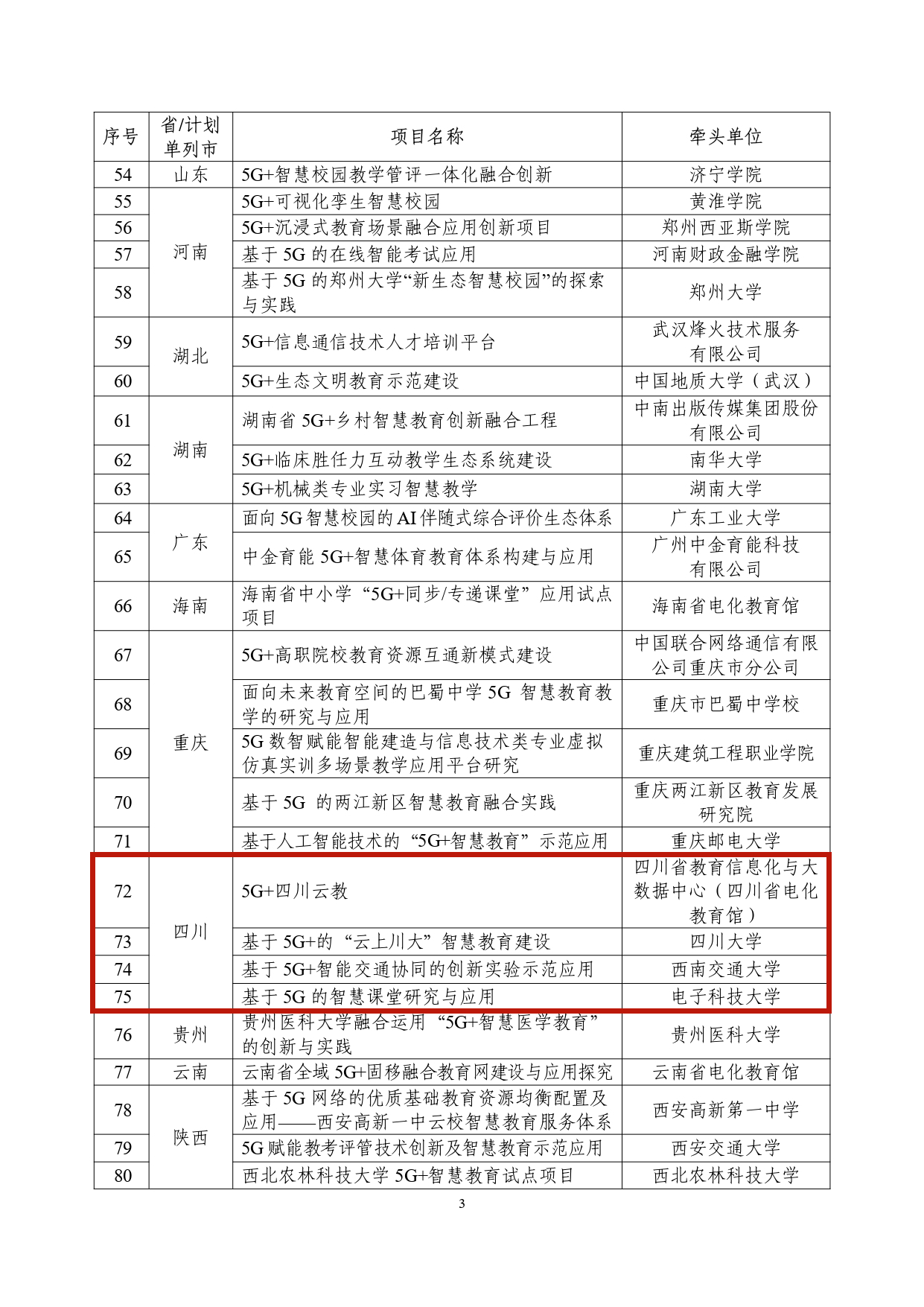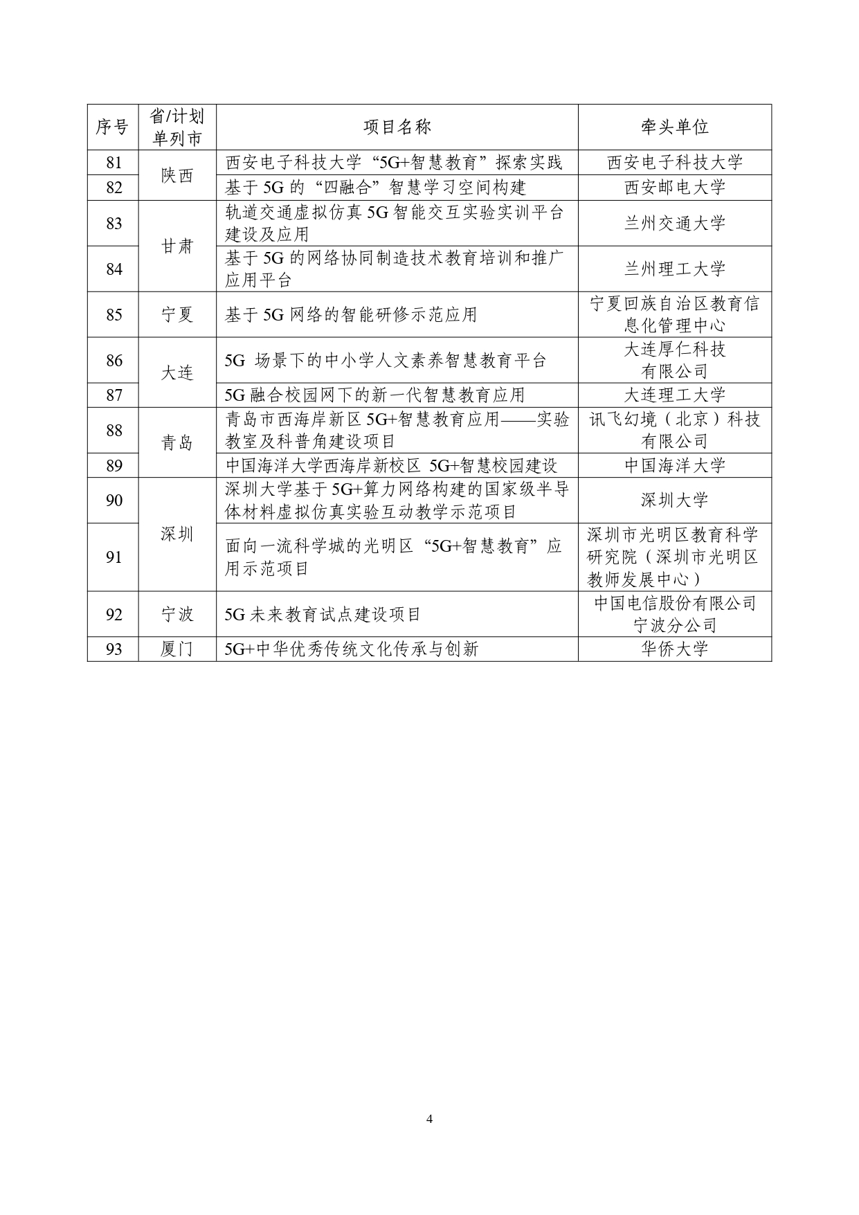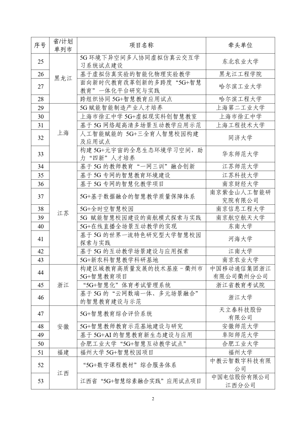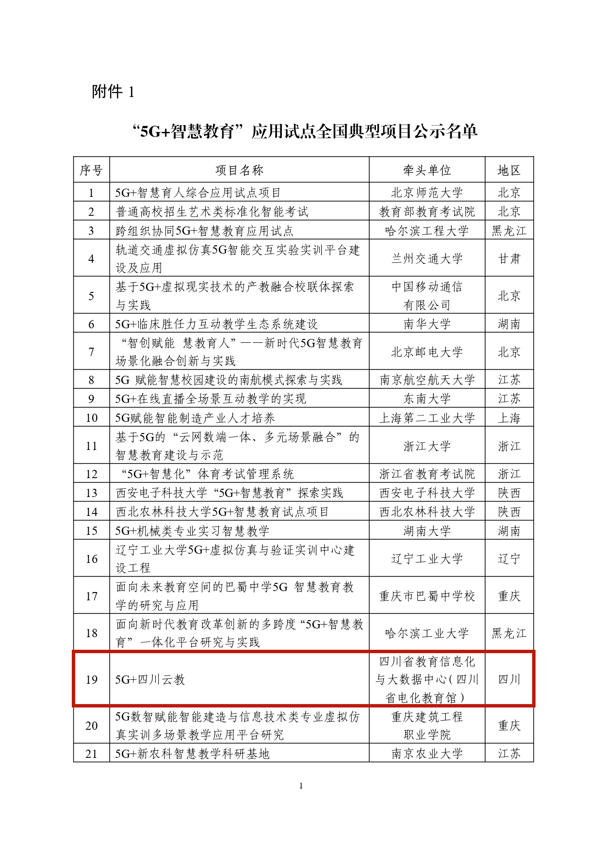 “5G+智慧教育”应用试点全国典型项目公示名单