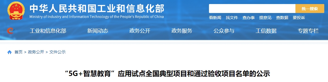四川发布客户端消息 记者从工信部网站获悉,日前,“5G+智慧教育”应用试点全国典型项目和通过验收项目名单公示,公示时间为2024年7月12日至2024年7月19日。