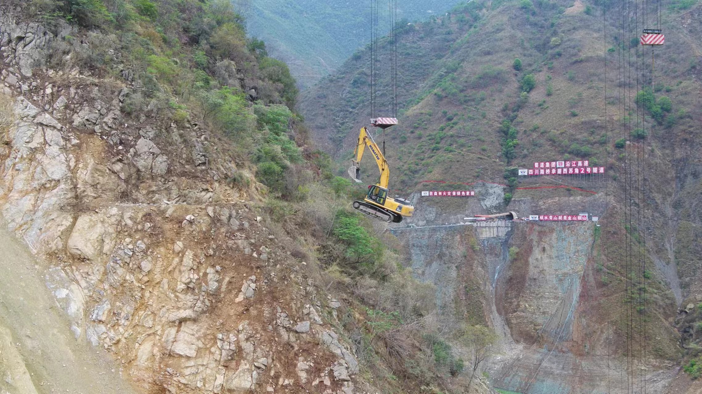 建设过程中,面对现场不具备施工场地条件的情况,参建团队创新性地采用“无便道”施工法,利用缆索吊系统构建“空中运输便道”,实现了材料设备的高效运输。吊装时,桥梁钢结构在云南省黄华镇加工组拼后,通过船舶运输至现场,再利用缆索吊系统进行高空吊装,最大吊装高度达240米,相当于80层楼高,展现了令人震撼的“空中飞车”景象。
