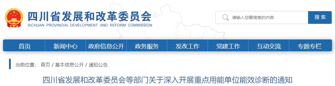 四川发布客户端消息 记者从四川省发展和改革委员会网站获悉,日前,四川省发展和改革委员会等9部门发布《关于深入开展重点用能单位能效诊断的通知》(以下简称《通知》),明确主要目标、领域范围、主要任务和重点工作等。