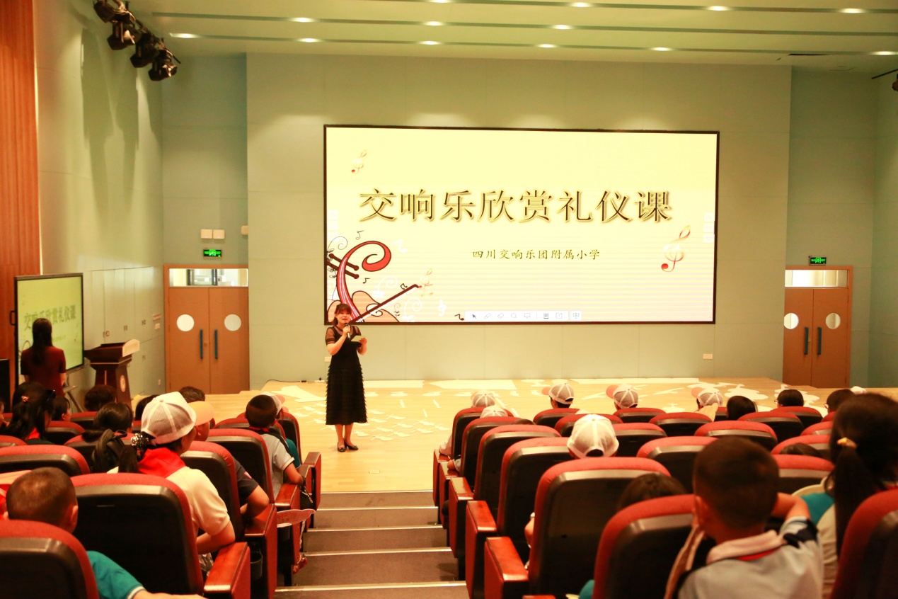 如何在安静的环境中享受美妙的音乐?在音乐会上鼓掌应该在什么时候进行?在四川交响乐团附属小学,同学们了解了关于音乐会的基本礼仪知识,并在该校老师的带领下全程实景模拟一场音乐会,在参与、体验中把音乐会礼仪知识内化于心。“同学们,一个标准的交响乐团编制,包括弦乐组、管乐组和打击乐组。”该校教师还通过互动游戏让同学们了解交响乐团的编制、不同的乐器以及作曲家与作品的知识。