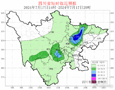 7月17日14时,四川省气象台发布短时临近预报: