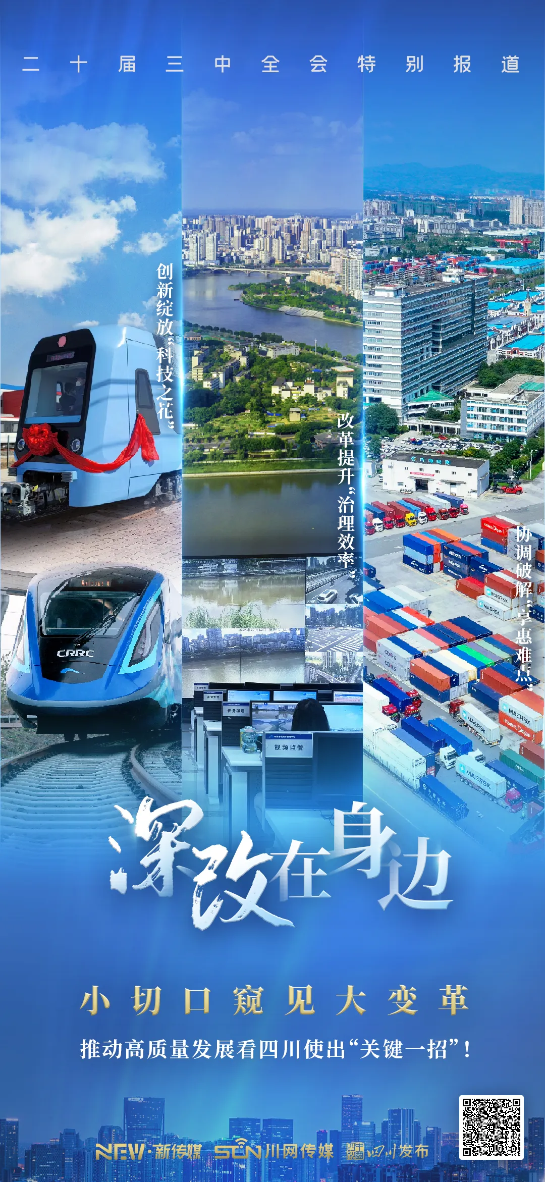我们将走近一道铁轨,探秘一湾清水,见证一项科技成果转化……聚焦群众切身感受、真实体会,记录全面深化改革在四川走深走实的各个切面,以“小切口”管窥“大变革”,讲述改革开放潮涌下,新时代四川的日新月异。