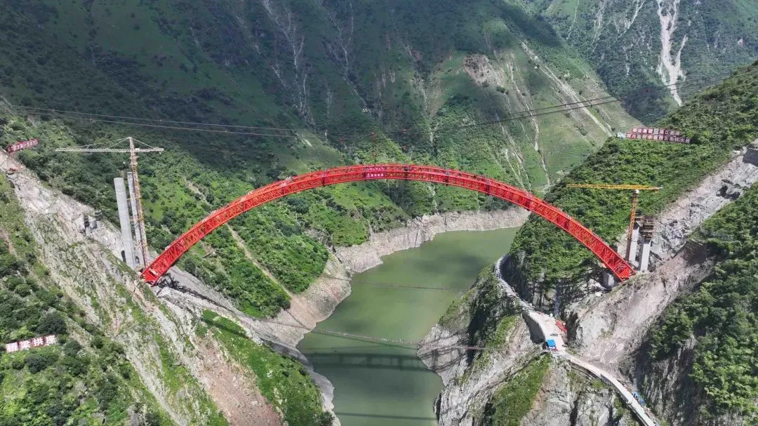 建设过程中,面对现场不具备施工场地条件的情况,参建团队创新性地采用了“无便道”施工法,利用缆索吊系统构建“空中运输便道”,实现了材料设备的高效运输。吊装时,桥梁钢结构在云南省黄华镇加工组拼后,通过船舶运输至现场,再利用缆索吊系统进行高空吊装,最大吊装高度达240米,相当于80层楼高,展现了令人震撼的“空中飞车”景象。