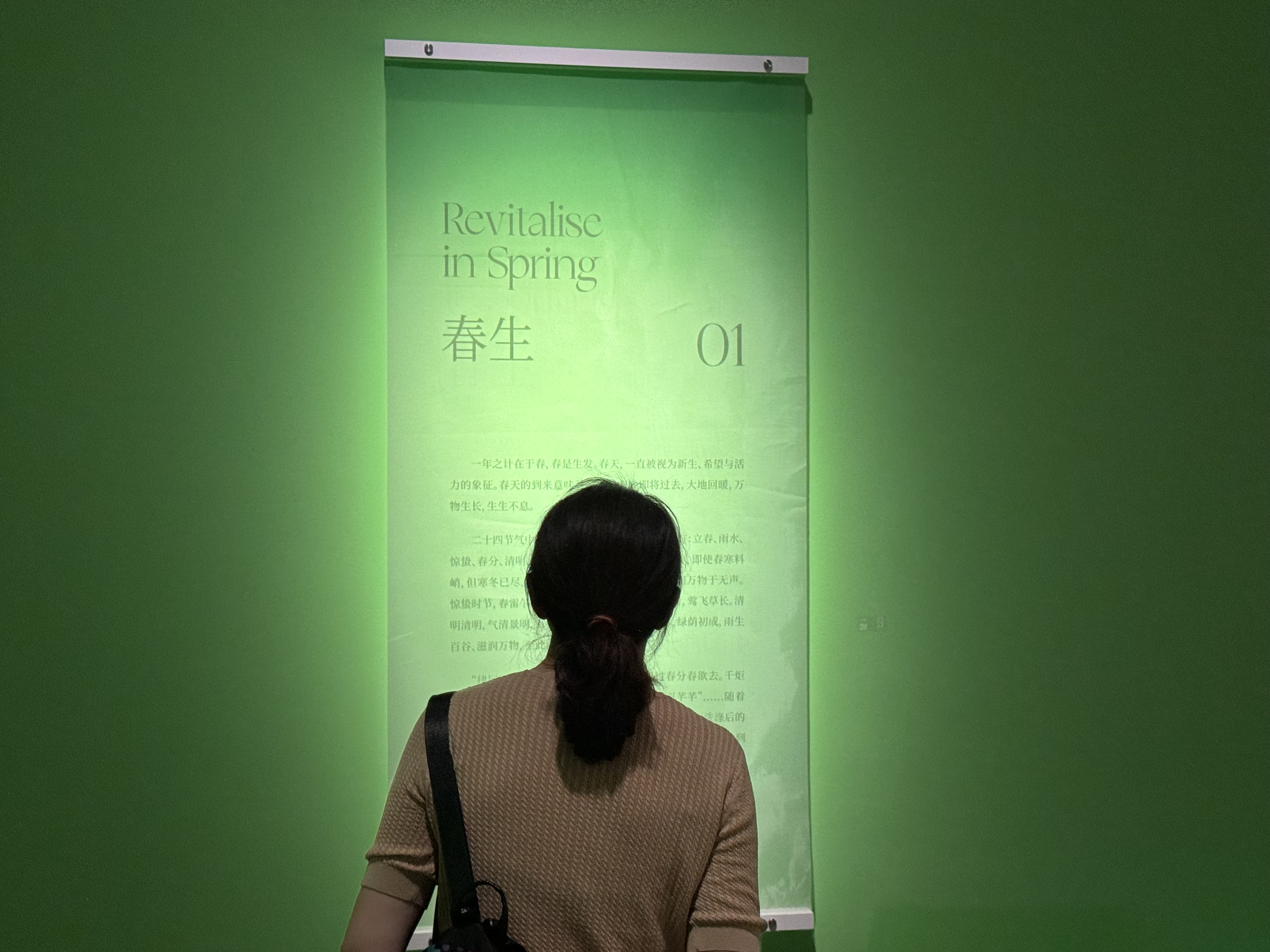 彭祖帅介绍,展厅还设计巧妙地参照了中国传统色彩,将不同的展厅匹配以相应的季节色调,通过色感的直观呈现,巧妙还原了古人对季节流变时的物感体验。