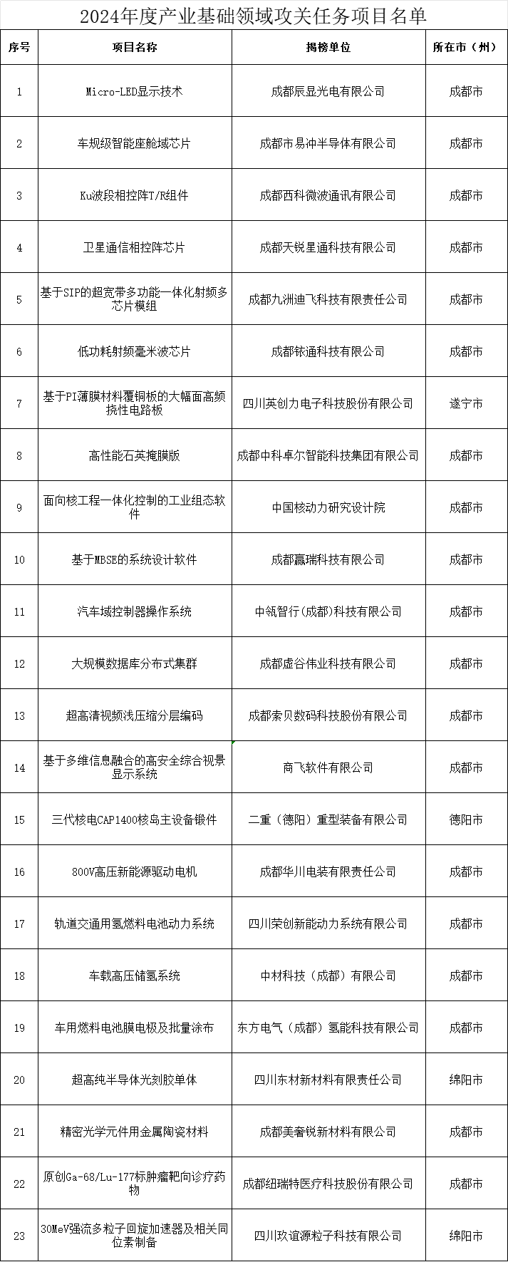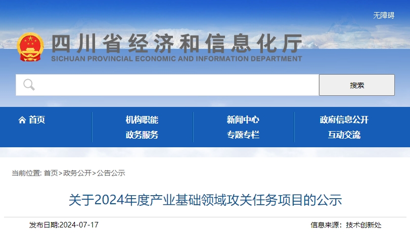 四川发布客户端消息 记者从四川省经济和信息化厅网站获悉,7月17日,四川省经济和信息化厅公示2024年度产业基础领域攻关任务拟支持项目名单,公示时间为2024年7月17日—2024年7月23日。根据公示名单,我省共23个项目拟入选。