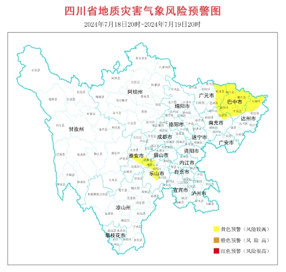 另一方面,四川省地质灾害防治指挥部办公室发布7月18日20时至7月19日20时,全省地质灾害气象风险预警。具体如下: