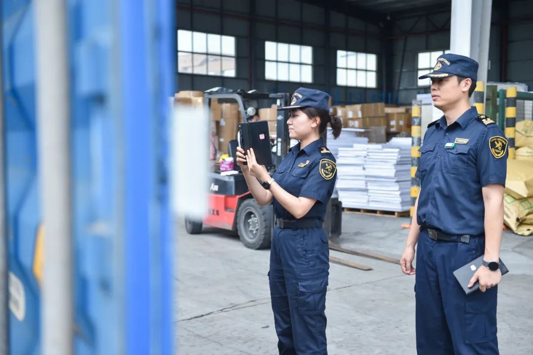 图片成都海关所属青白江海关关员正在查验跨境电商商品(邓茗芳/ 摄)