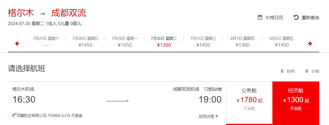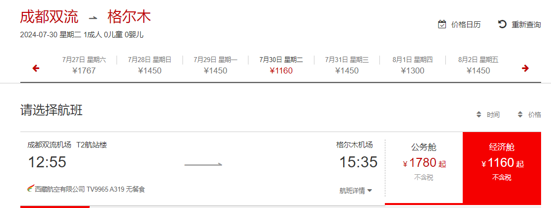 目前,从成都飞往格尔木需在西宁或拉萨转机