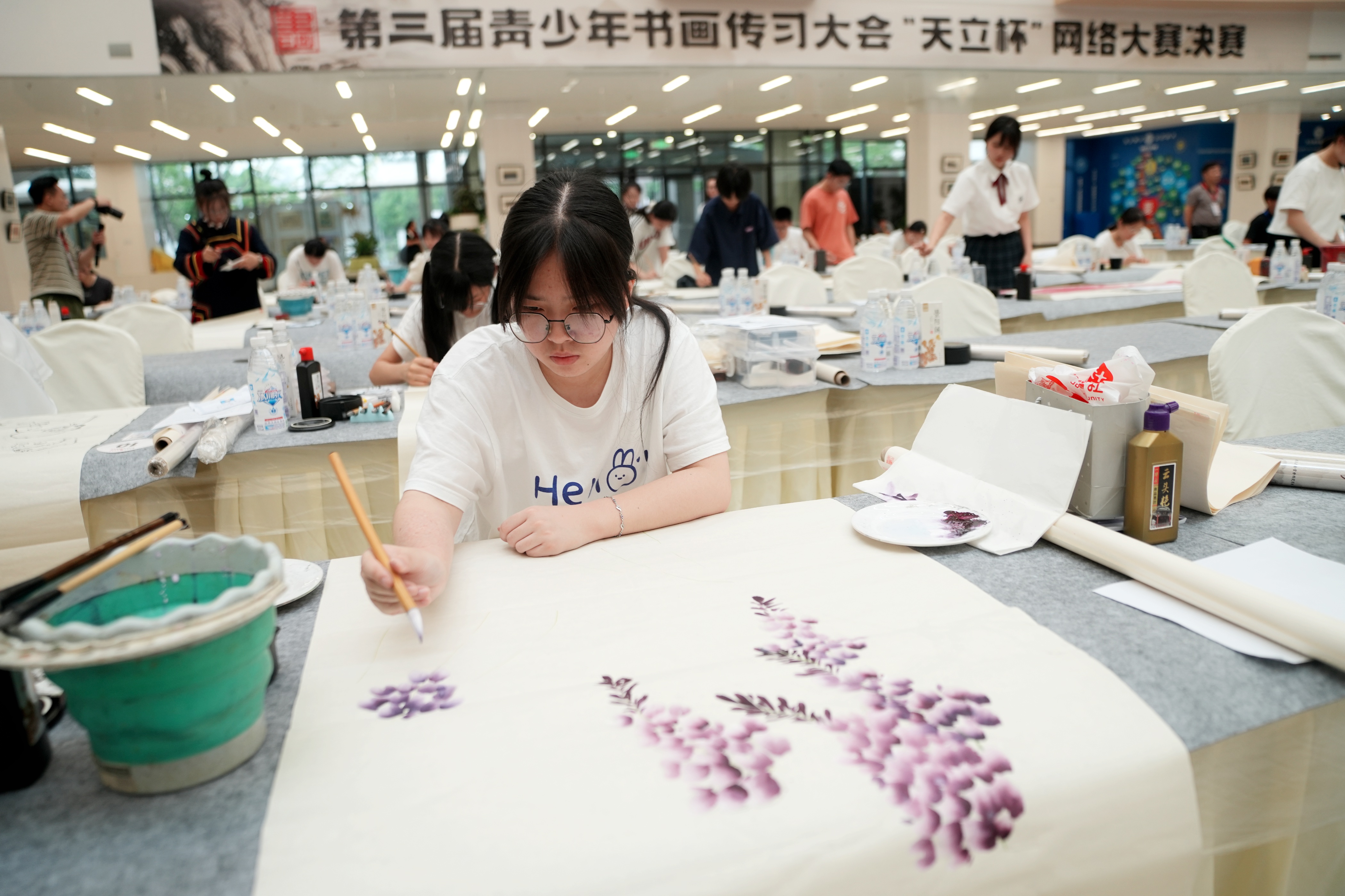 7月20日上午,盛夏纷纷细雨中,第三届青少年书画传习大会“天立杯”网络大赛决赛在天立教育旗舰校区举行。