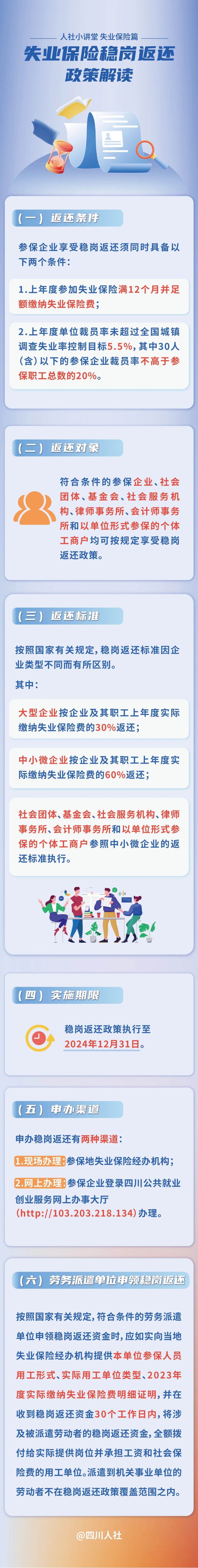 据“四川人社”官微消息,四川“稳岗返还”政策将延续执行至2024年12月31日,其中最高可返还60%。详情: