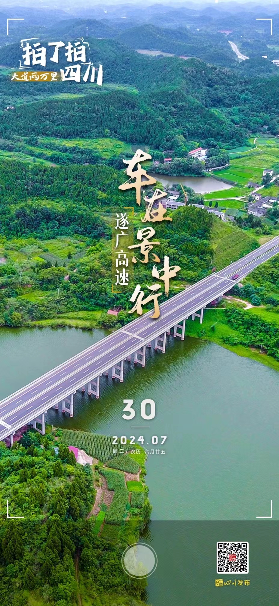 遂广高速起于遂宁市蓬溪县,经广安市武胜、岳池县,止于广安区。该项目的建设进一步完善了四川省高速公路网,形成遂宁、广安两市之间最直接、最便捷的高速公路通道。因设计理念先进,能与自然环境融为一体等特点,还获得了2018年四川省优秀工程勘察设计一等奖。