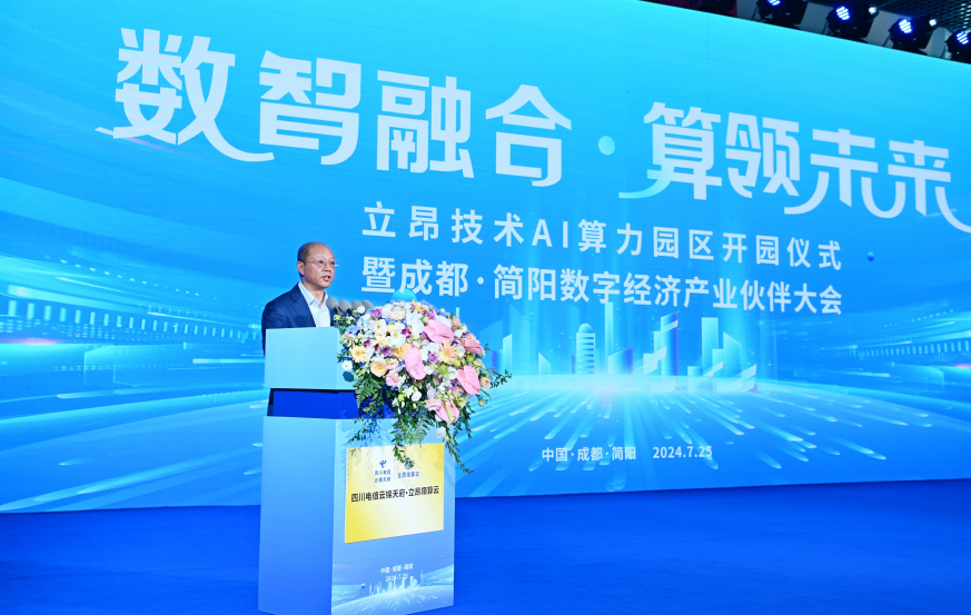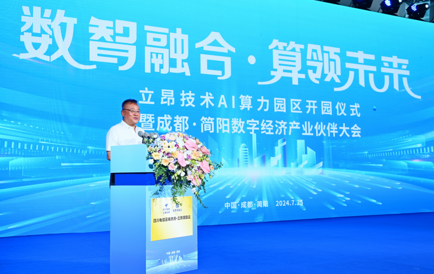 7月25日,以“数智融合·算领未来”为主题的云锦天府-立昂技术AI算力园区开园仪式在成都简阳市举行。简阳市委副书记、市长苏呈祥,立昂技术股份有限公司董事长王刚,中国电信四川公司总经理郑成渝等出席本次活动。来自多个行业的专家、企业代表莅临现场,共同见证本次算力建设成果,共绘AI时代新质算力的发展蓝图。