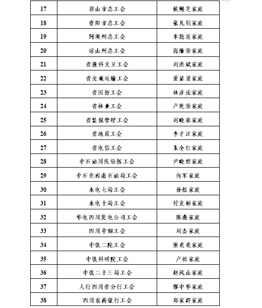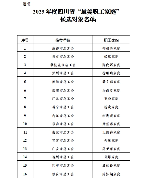 2023年度四川省“最美职工家庭”候选对象名单