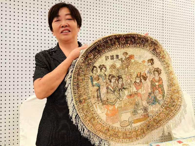 首批国家乡村工匠名师,四川省级非遗项目遂宁福锦手工编织技艺代表性传承人,四川省农村手工艺大师陈玉也很有感触,她的作品曾获“第二届四川特色旅游商品”、“第四届四川旅游纪念品设计大赛金奖”,受邀参加了德国汉诺威世界工业博览会。遂宁的锦手工编织丝毯作品出海后在国际社会广受外国顾客的青睐,被称为“软黄金”。陈玉介绍:“目前遂宁的从业工人有超2000人,每年的作品远销欧美,我们的丝质量好,工艺好,工艺复杂作品甚至与黄金等价。”