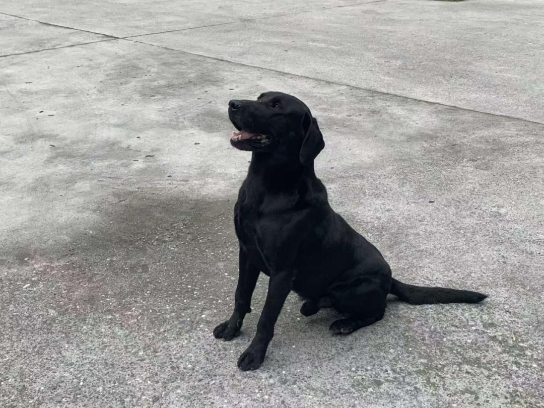 黑虎。拉布拉多,性别男,出生于2015年7月,2016年3月服役,胃口好、性格强势,参加过搜救犬初训、复训并通过。