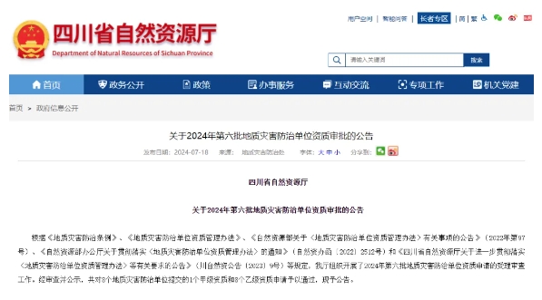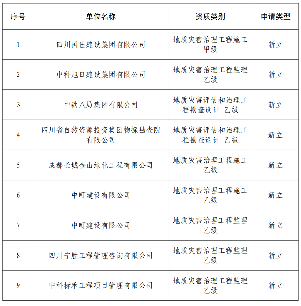 地质灾害防治单位资质审批公告