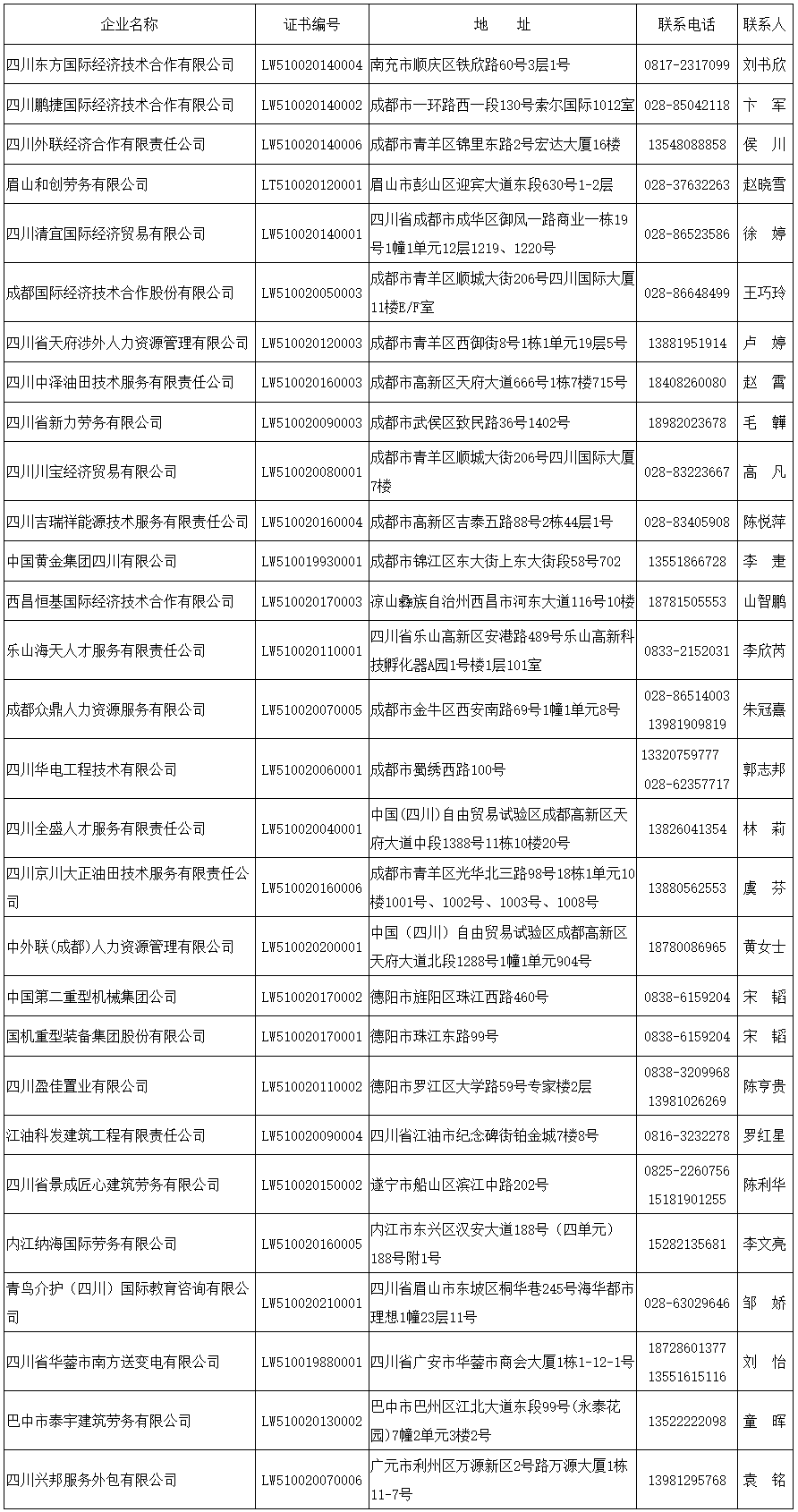 最新名单!四川这些企业具有对外劳务合作经营资格