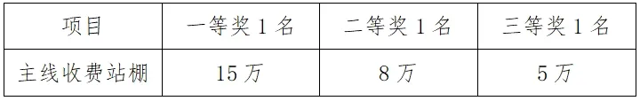 3. 二等奖、三等奖奖金为公布名次后30个工作日内一次性发放。一等奖奖金分两次发放,10万元为公布名次后30个工作日内发放,5万元为配合施工图设计单位完善设计条件后发放。