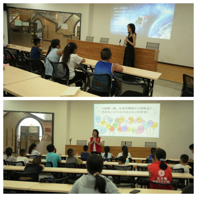 听,镇党群服务中心传来了朗朗读书声,正直暑假之际,为何这里会有课堂声呢?原来这里正在举行暑期“童伴之家”夏令营。今年暑假,五凤镇依托9个新时代文明实践站(所),深入开展“蜀葵花开·和美家风”社区教育工作,联同山东工商学院、江西农业大学等4所高校的6名大学生,组建起“童伴之家”志愿服务队伍,正在开展为期12天的暑期夏令营,并开设有趣味文化课、亲子翻转课、安全教育课等课程10余种。目前,已服务辖区小学、初中学生400余人次。