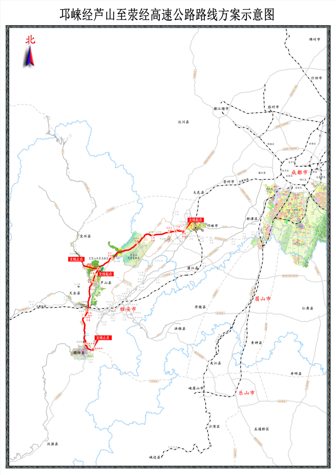 2024年8月9日,邛崃经芦山至荥经高速公路项目对投资人进行公开招标。项目全长114.4公里,估算总投资270.7亿元。路线起于邛崃市孔明街道,与成名高速公路以及在建的天府新区至邛崃高速公路相接,经邛崃市、芦山县、天全县,止于荥经县青龙镇,与雅西高速公路和规划的乐山至荥经高速公路相接,设支线连接至宝兴县灵关镇。