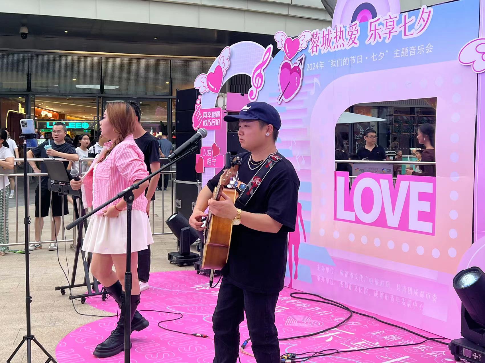 “和我在成都的街头走一走,喔,直到所有的灯都熄灭了也不停留……”此次主题音乐会以乐队演奏歌曲《成都》开场,引发了全场合唱。据了解,该音乐会分为“以爱之名、爱不宜迟、乐享七夕”三个篇章,通过成都街头艺人男女歌手独唱、对唱以及乐队奏唱的丰富表演形式,带来了观众耳熟能详的经典歌曲,包括《告白气球》、《你最珍贵》、《爱要坦荡荡》、《月亮代表我的心》等恋爱歌单。