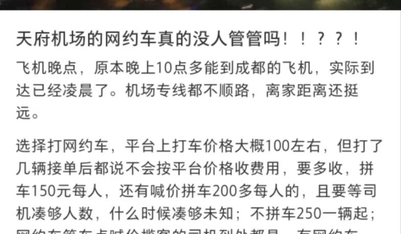 针对部分网友和旅客反映的问题,记者从成都市交通运输综合行政执法总队了解到,除了进一步加大日常执法巡查力度外,执法总队已于7月1日启动了道路运输安全百日攻坚执法行动,积极会同机场公安、交警部门,依托“交警天网筛查+交通数据核实”等工作机制,在双流机场和天府机场重点区域开展联合执法专项整治,以“零容忍”态度严厉打击非法营运,严肃查处营运车辆秩序混乱、网约车和出租车临时加价等违法违规行为,集中整治客运市场秩序,全力维护人民群众生命财产安全。
