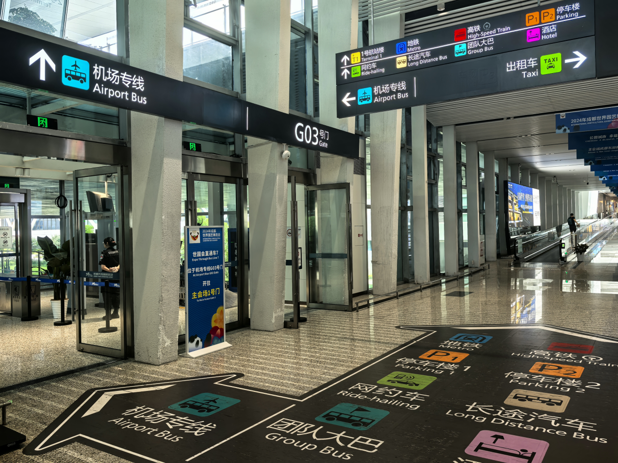 记者在天府机场现场发现,机场的标识和指引牌比较完善,机场专线、团队大巴、出租车等站台设施布置合理,与T1、T2航站楼的到达口十分接近。通过走访,记者了解到以下几种方式可供旅客选择: