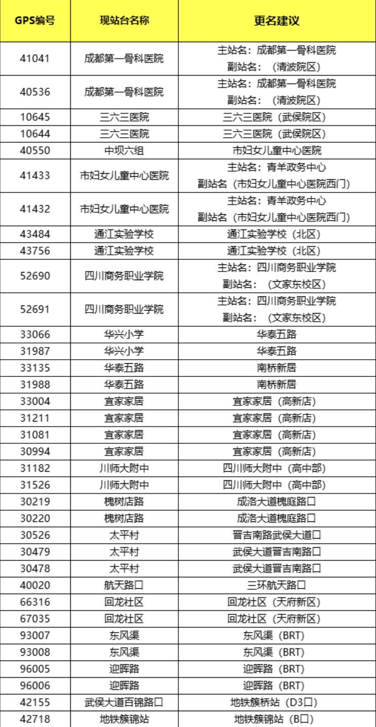 近期,成都公交通过“开门听音”收集到了许多关于站名更名的意见建议,结合全面梳理、实地踏勘,首批更新30余个公交站点名称,为市民提供更清晰、更准确的出行指引。涉及“一院多区”“一校多区”等场所,快来看看有你熟悉的吗?