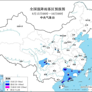 中央气象台8月15日06时继续发布暴雨蓝色预警: