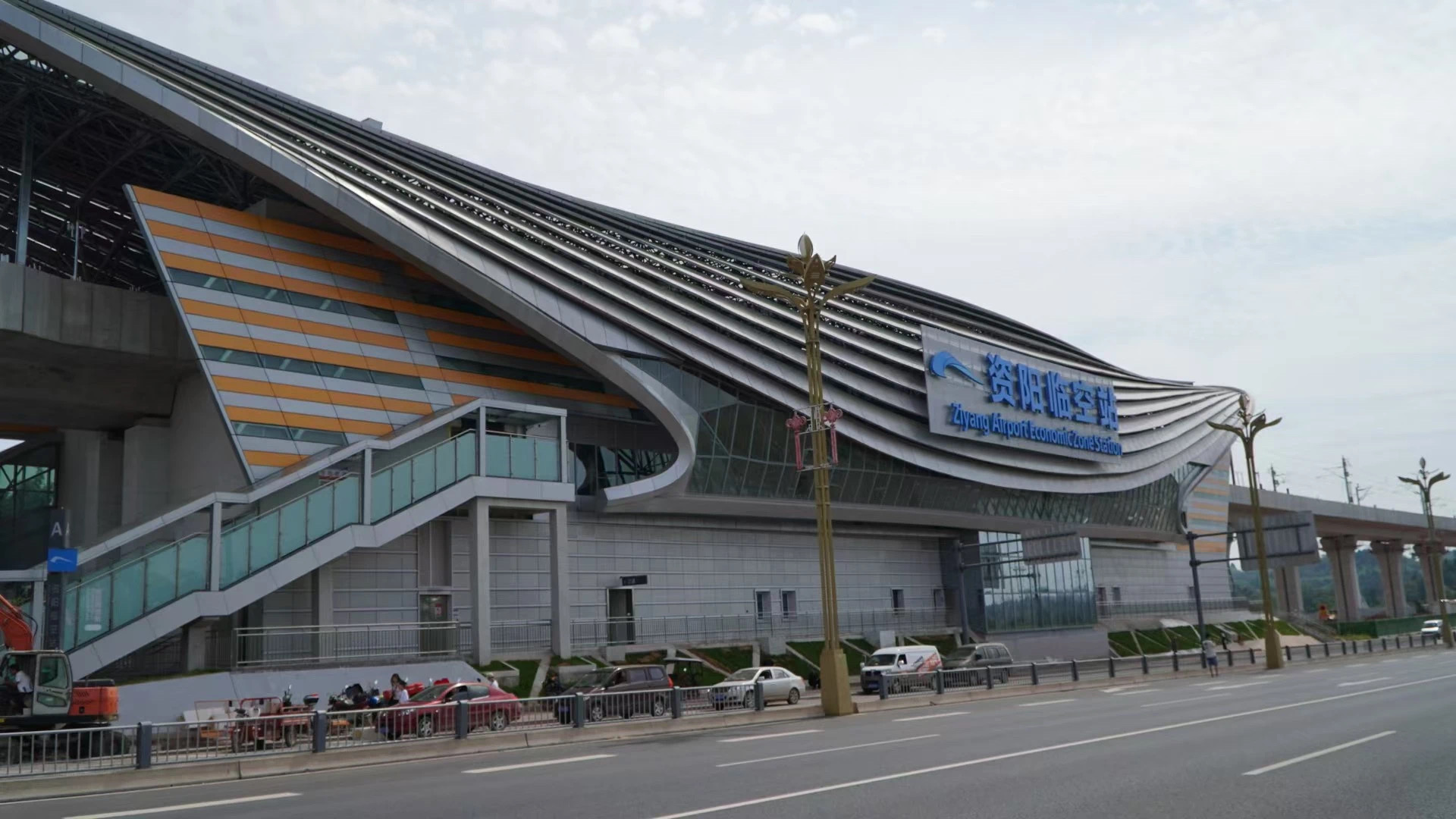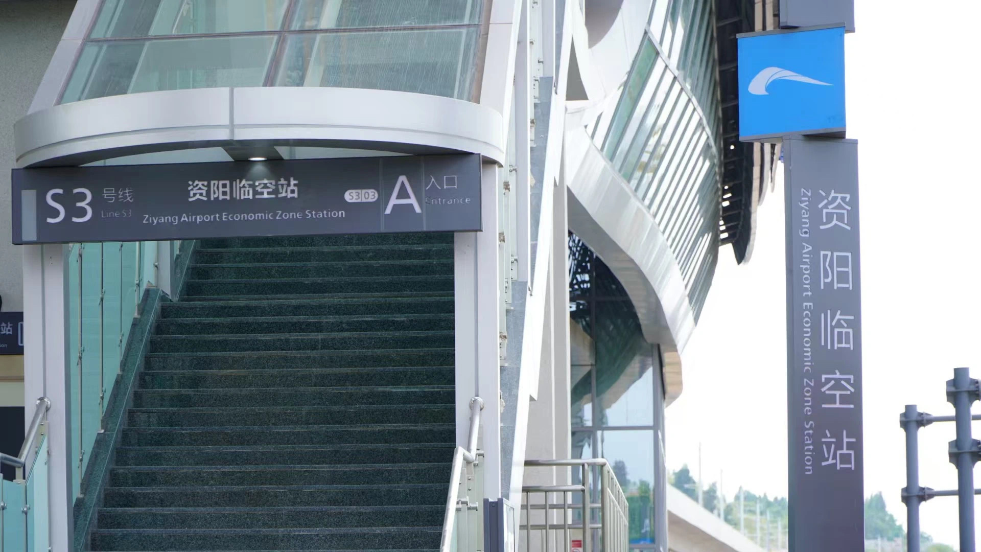 今日从福田站出发,到达第一个途经站点为资阳临空站。该站为高架站,采用的是网架结构,全长135米,两侧悬挑20米,径向宽度29米。记者从站外看去,车站网架结构造型犹如机翼。“该设计为借‘机’起飞,寓意资阳临空经济区借力轨道交通和天府国际机场的空港经济利好,快速带动区域经济发展。”成都轨道建设公司项目管理一中心副主任池进波表示。