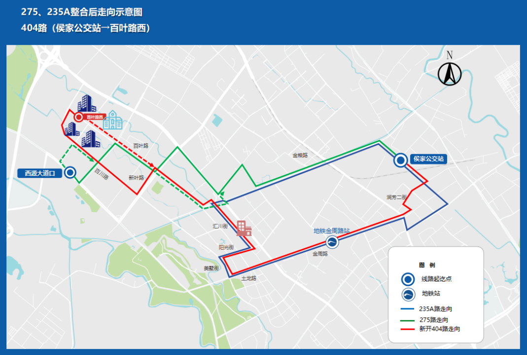 为进一步强化侯家花园、美墅街、中海国际沿线市民至高新西区工业园区公交出行,拟整合235A、275路,优化后线路代码为404路,同步将起讫点调整为侯家公交站—百叶路西。