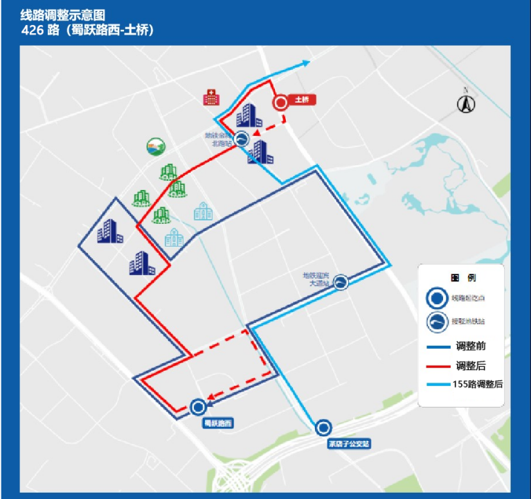 为方便两河片区居民前往双河幼儿园,强化公交地铁接驳,拟整合1051路、G415路,优化后线路编码为426路,同步将高峰发车频率缩短至5-6分钟。