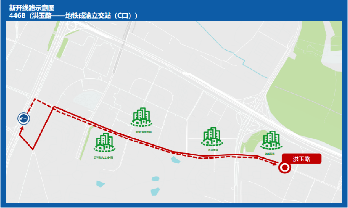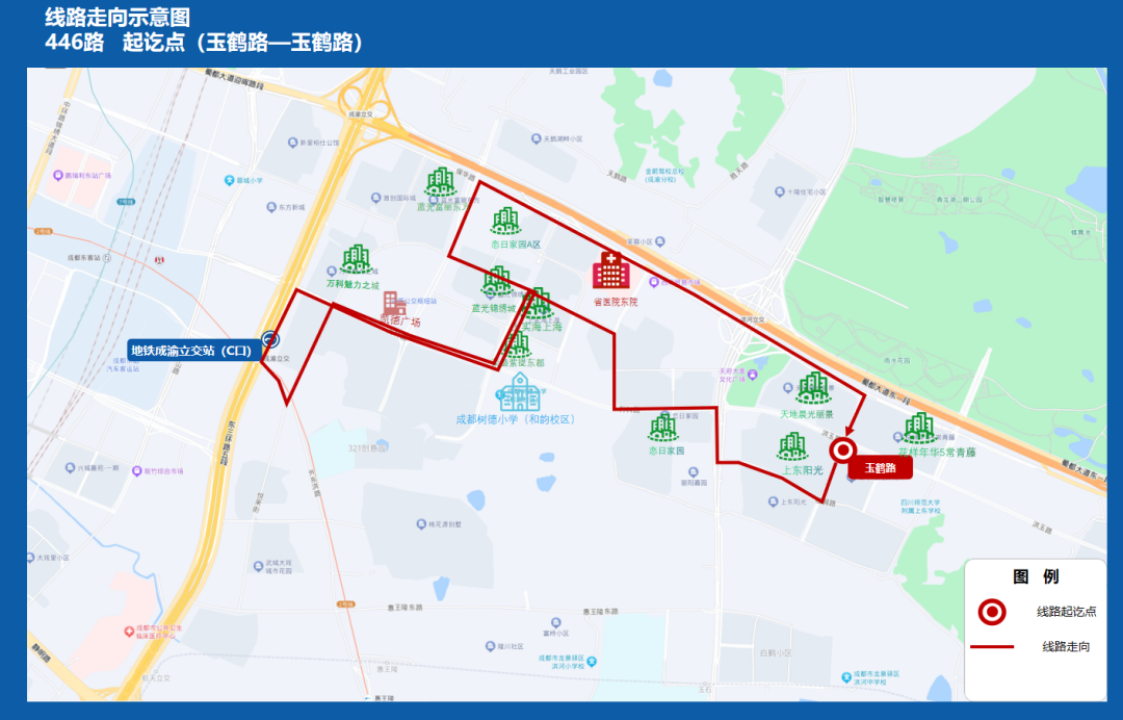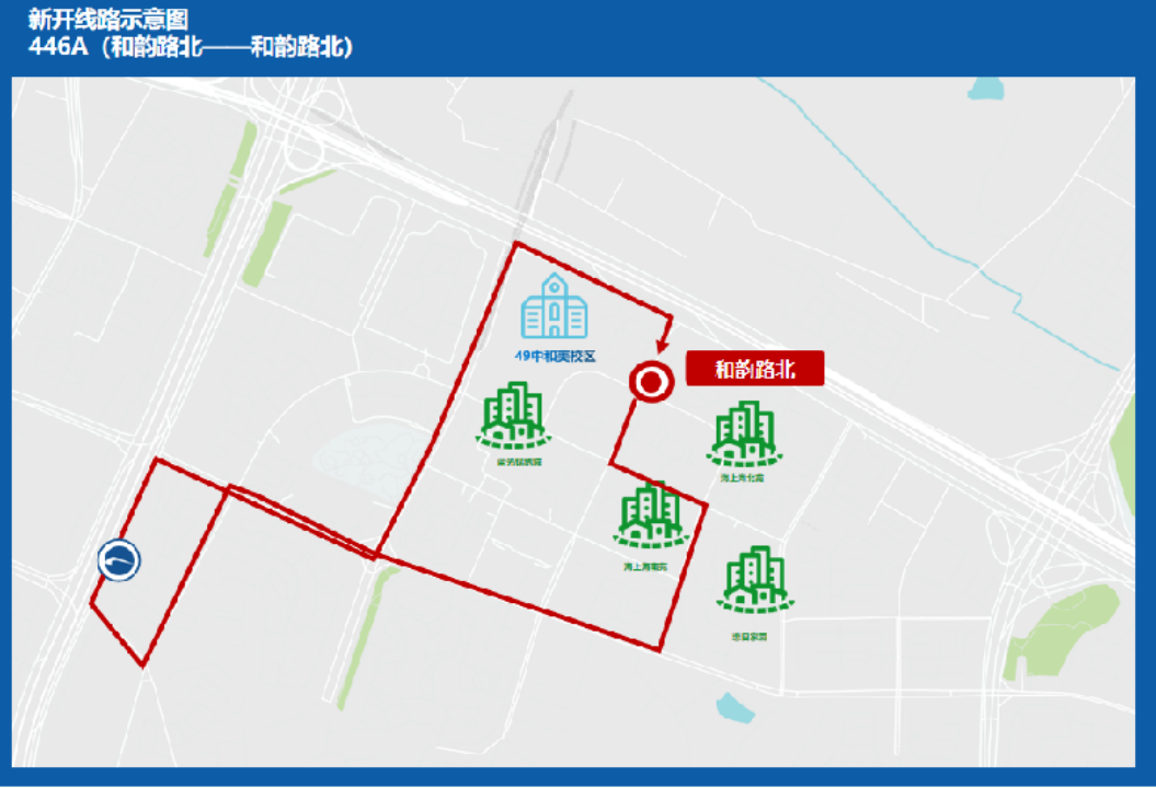 为服务不同时段客流出行需求,串联学校、社区、医院、商圈等地点,拟将446路起讫点调整为玉鹤路—玉鹤路。