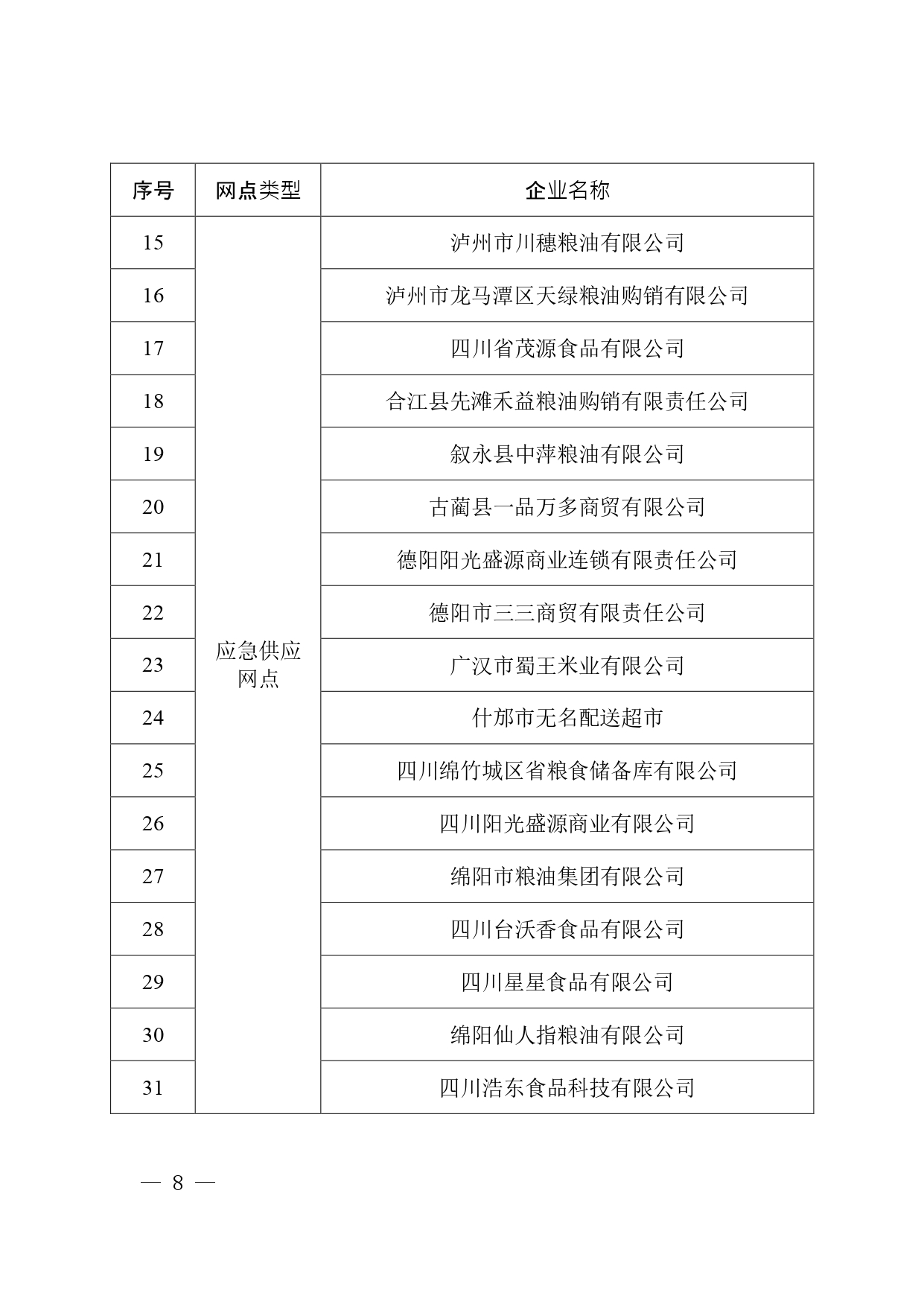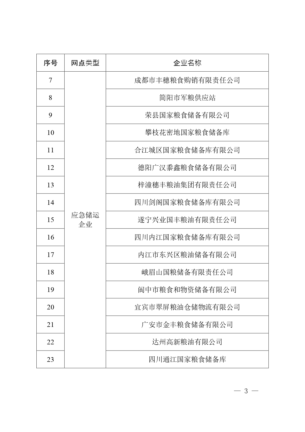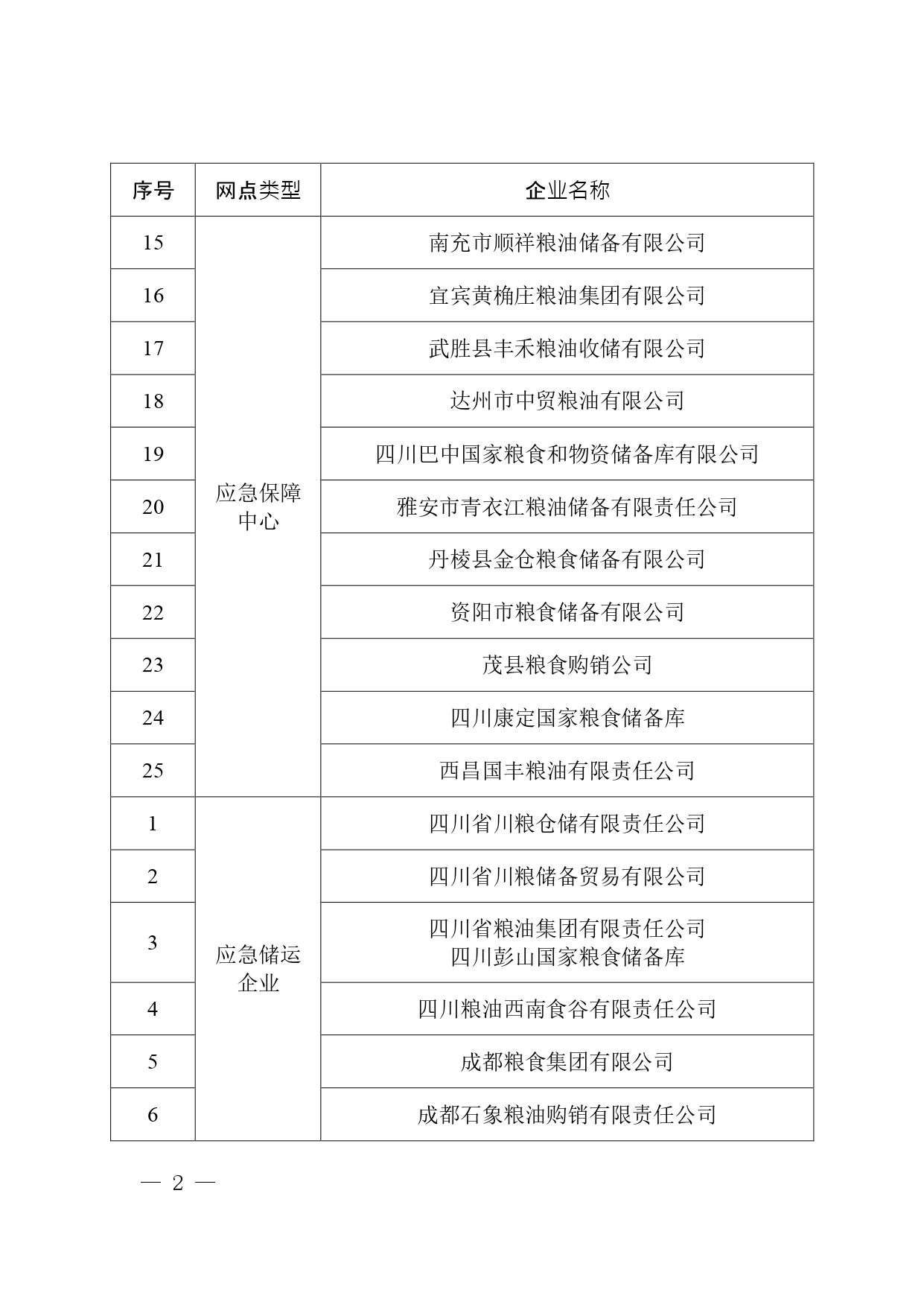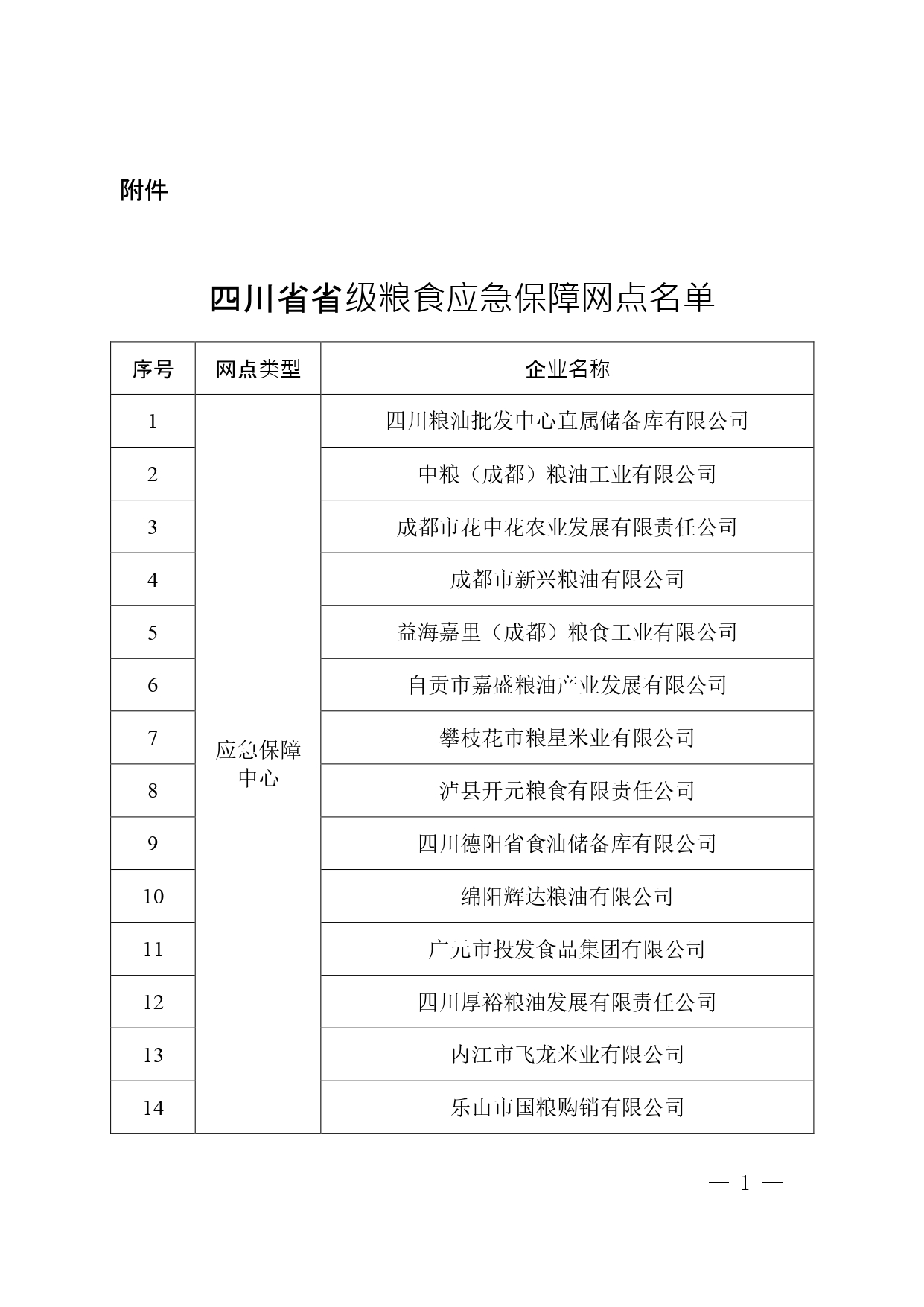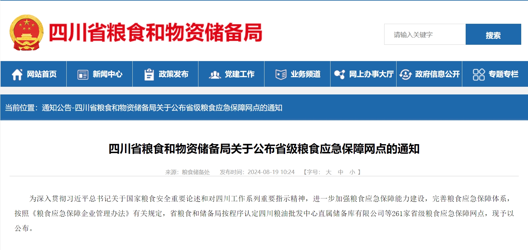 四川发布客户端消息 今日,四川省粮食和物资储备局发布关于公布省级粮食应急保障网点的通知。进一步加强粮食应急保障能力建设,完善粮食应急保障体系,按照《粮食应急保障企业管理办法》有关规定,省粮食和储备局按程序认定四川粮油批发中心直属储备库有限公司等261家省级粮食应急保障网点。