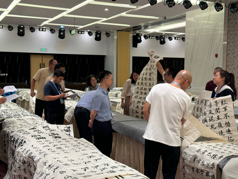 “书之妙道,神采为上,形质次之,兼之者方可绍于古人”,王道义表示,本次大赛书法组评审遵循了这一古例,主要从中国书法的用笔、结字、章法、款式设计、用印以及艺术原理来进行考评。此外,本次比赛,专家还将结合新时代的要求,包括文本的思想性和文字的规范性,加上艺术性和个性,选评出系列优秀作品。