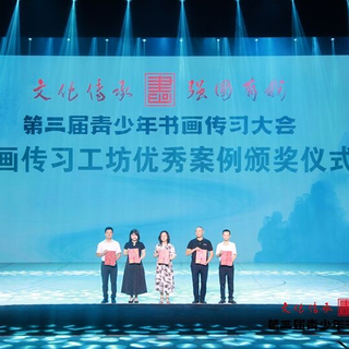 第三届青少年书画传习大会书画传习工坊优秀案例颁奖仪式,一等奖获得者上台领奖