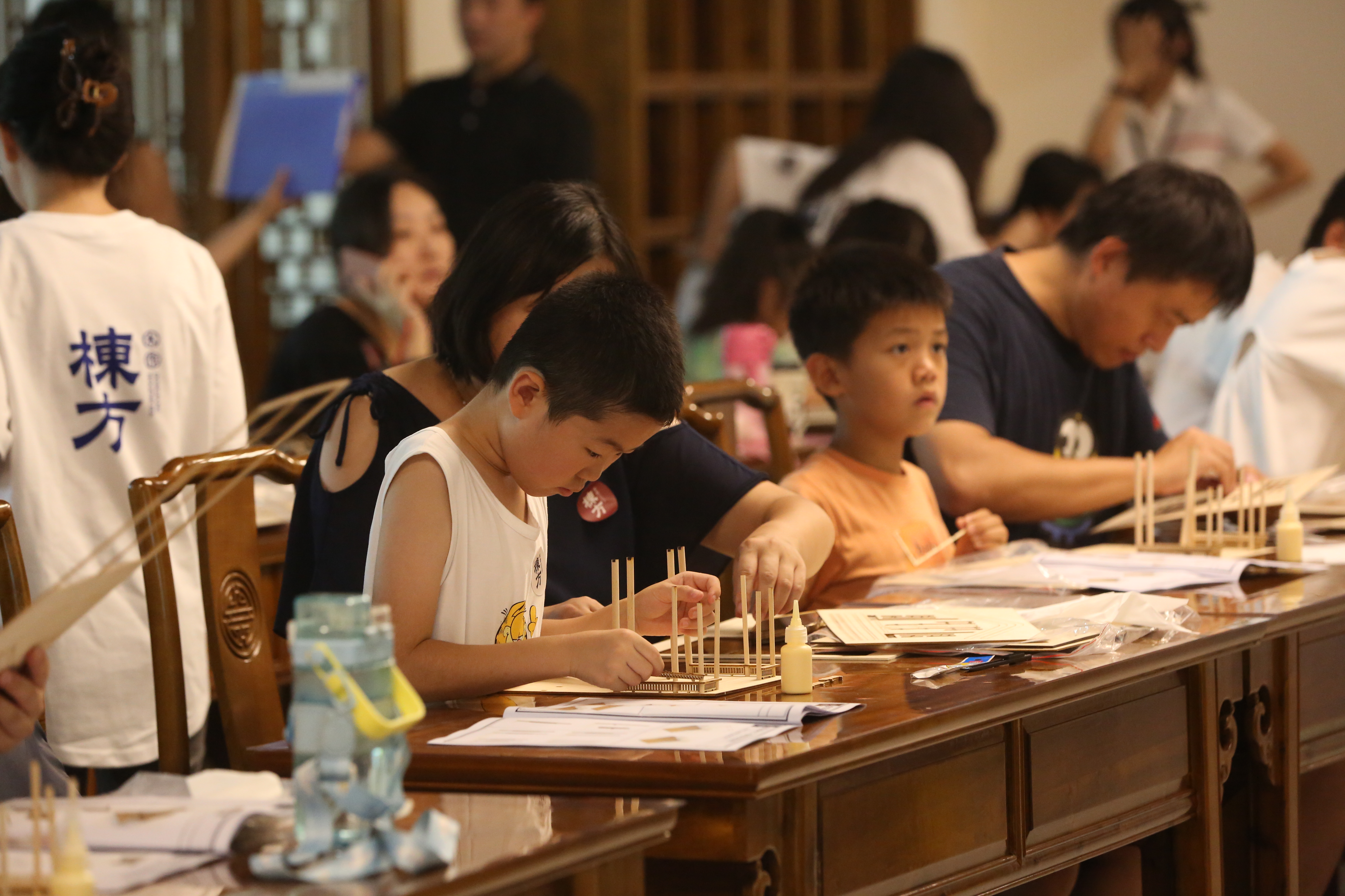 参观讲解结束后,大家来到武侯书院,亲子协力制作武侯祠过厅古建筑木模型,孩子们不仅体验到手作的乐趣,更加深了对木结构古建筑中的文化与科技的了解。据悉,“三国匠造所之巍然栋梁”亲子社教活动第二场将于8月26日开展。