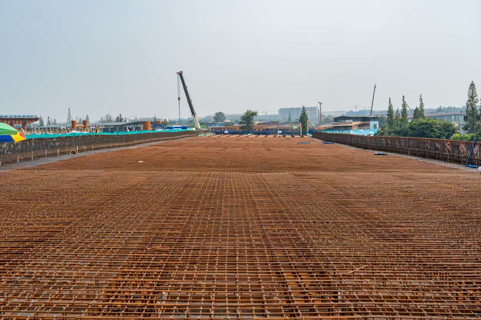此次完成主体结构施工的先行段科研桥梁桥宽42米,采用双向八车道整幅式盖梁方案,盖梁最长达54.7米、最高达4.05米、最重达122吨,施工难度较此前通车的密梁式型钢组合梁桥彭山青龙大桥试验桥大幅增加。为确保先行段科研桥梁施工顺利实施,项目团队充分研究该新型桥梁的结构特点,不断完善施工技术方案,克服大节段钢结构运输吊装、城市杆管线多、施工组织复杂等困难,有效保证施工质量和进度。