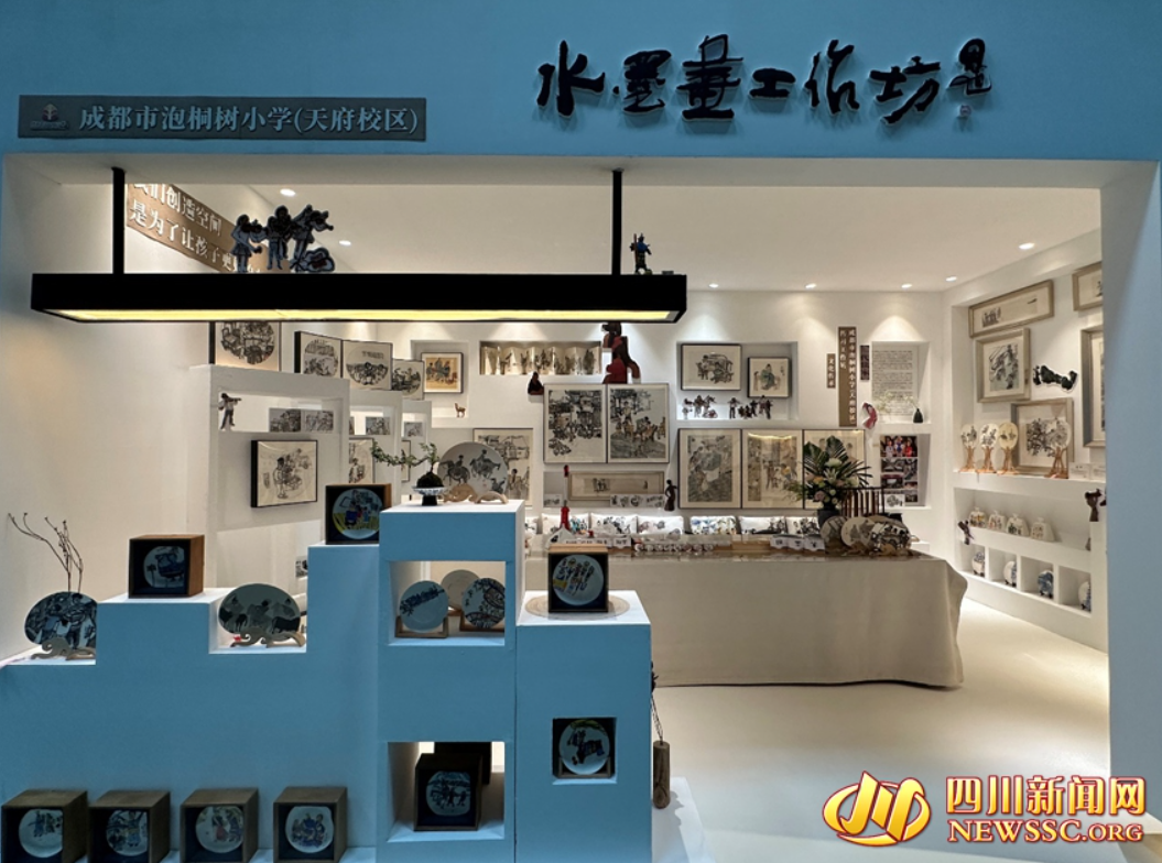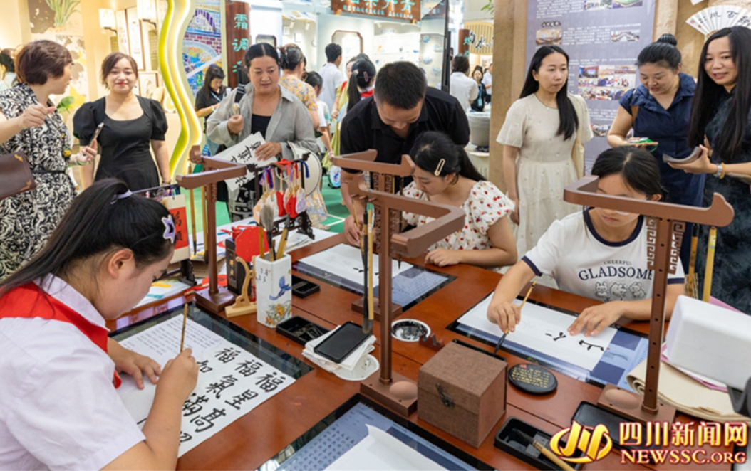 拥有浓厚三星堆元素的德阳广汉“丹青墨语”书画工作坊吸引了一拨拨书画爱好者前来体验。来自自贡的“墨林篆韵”书画传习工作坊则是将书画与篆刻完美结合,精心设计了四个主题展区,让大家直观领略书画艺术之美……