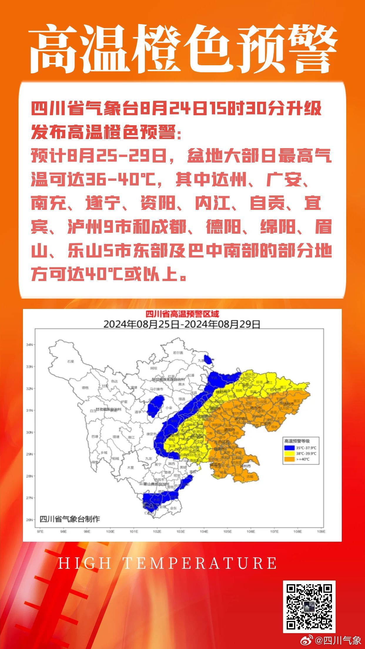 四川省气象台8月24日15时30分升级发布高温橙色预警: