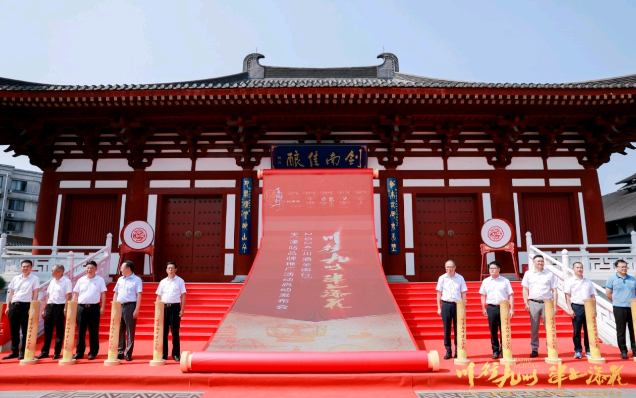 由四川省经济和信息化厅、四川省商务厅、四川省文化和旅游厅指导,四川省酒业研究和发展中心、德阳市酒业协会、四川剑南春(集团)有限责任公司承办,德阳市经济和信息化局、绵竹市人民政府支持,宜宾、泸州、成都、德阳、遂宁五大产区共同协办的“川行九州 津上添花”──2024川酒全国行天津站品牌推广活动启动仪式,伴随着激昂的鼓声,在绵竹市剑南老街顺利举行。