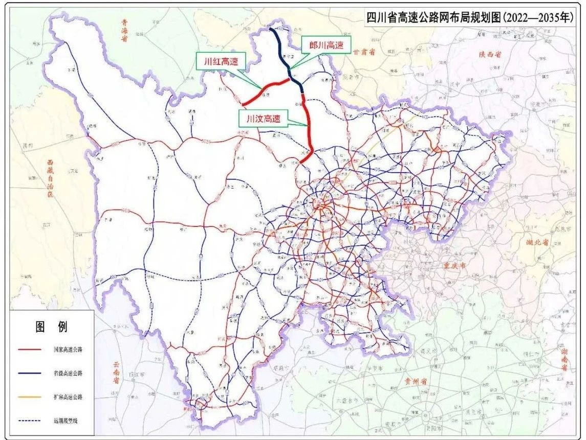 G0611川主寺至汶川(200公里、565亿元)、G0611郎木寺至川主寺(179公里、247亿元)高速公路属于国家综合立体交通网主骨架西部陆海走廊,是我省西北向通往甘肃、青海等地的大通道。