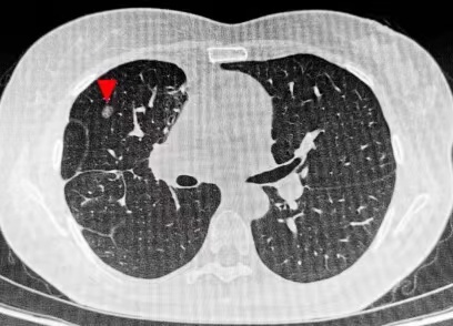 患者李女士今年47岁,2021年体检发现右肺多发结节,无咳嗽、咳痰、胸闷、胸痛等症状。后在当地医院及时进行胸腔镜下右肺上叶、中叶、下叶多处切除术,术后病理诊断均为腺癌。李女士术后一年发现右肺中叶新发磨玻璃结节,后定期随访发现结节呈增长趋势,考虑异时性多原发肺癌可能性大。