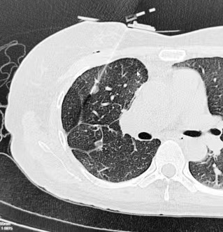 手术用时半小时。术中采用局部麻醉,患者无明显不适,未出现气胸、血胸等并发症。术后观察,患者无特殊不适,顺利返回病房。术后1天复查胸片无特殊即安排出院。