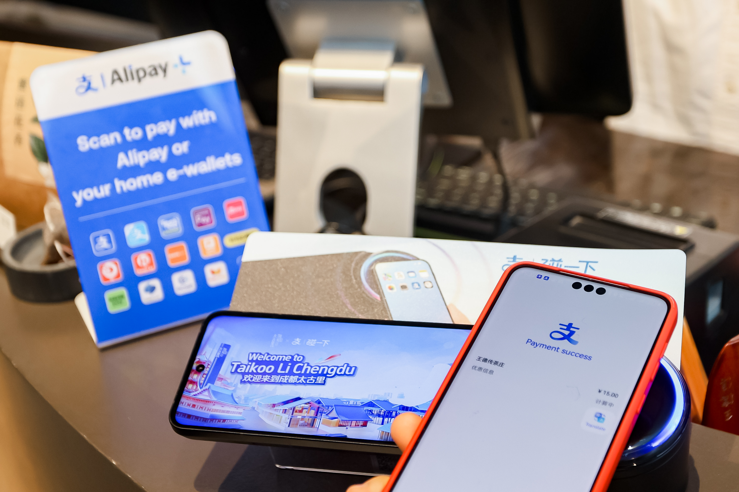 同日,支付宝宣布升级国际数字化便捷支付解决方案,即境外宾客在中国使用支付宝支付既能“扫一下”也可“碰一下”;值得一提的是,“碰一下”支付设备新上线中英文页面和英文语音播报服务,提升了支付体验,该方案率先在成都太古里商圈落地实施。
