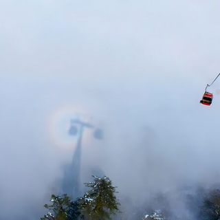 乘坐索道冲破厚重的云层